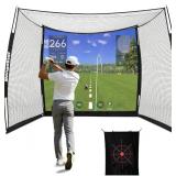 (110) MangoStar Golf Net, 11x8ft Golf Simulators Hitting Net with High-Density Impact Screen and Target Cloth, Heavy Duty Practice Cage for Swing Driving, Home Backyard Garage Indoor Outdoor Use