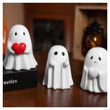 - Halloween Decor: Transform your home or porch into a haunted haven with this 3-piece ghost figurine set, a mischievous ghost, a loving ghost holding a red heart, and a sadness ghost with a white heart. Each unique design adds a layer of spooky charm, making it the perfect centerpiece for your halloween decorations.