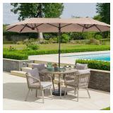 - 9FT LARGE CANOPY: This premium patio umbrella is equipped with a 180G 100% polyester canopy that's windproof, waterproof and fade-resistant, 97% UV protection, high-quality material can be used for many years. Air vented canopy at the top designed for air flow and prevent from inversion.