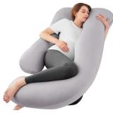 Sasttie Pregnancy Pillows for Sleeping, U Shaped Cooling Full Body Pillow with Removable Cover, Pregnant Women Must Haves, Maternity Essential, Light Grey