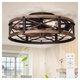 SHLUCE 19" Farmhouse Flush Mount Caged Ceiling Fans with Lights, 6 Speeds, Rustic Low Profile Ceiling Fan with Light and Remote, Small Bladeless Ceiling Fans with Lights for Kitchen, Bedroom - ETL