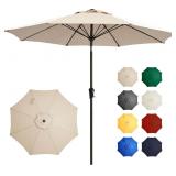 Ayge 9FT Large Outdoor Patio Umbrella Market Table Umbrella-UV Resistant, Easy Push Button Tilt and Crank, 8 Sturdy Fiberglass Ribs Heavy-Duty Pool Umbrella for Deck, Backyard,Garden,Beige
