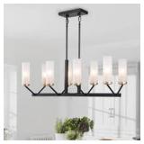 LNC Black Chandelier 8-Light Modern Transitional Linear Island High Ceiling Light with Frosted Glass Shades and Gold Accent