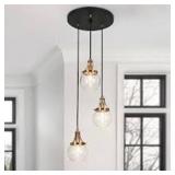 LNC Orbline Transitional 3-Light Black and Plated Brass Cluster Chandelier with Clear Globe Glass Shade Foyer Pendant Light
