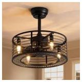ANTOINE 17 in. Indoor Black Ceiling Fan Caged Ceiling Fan with Lights and Remote Industrial Enclosed Ceiling Fan