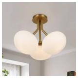 HUOKU Kza 3-Light 16.9 in. W Brushed Gold Semi-Flush Mount Branch Sputnik Ceiling Light with Oval Opal Glass for Kitchen