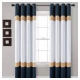 HOMEBOUTIQUE Alexander Color Block Light Filtering Window Curtain Panels Navy/Gold 52X84 Set