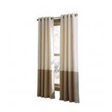 Add a touch of contemporary style to your room with this color blocked tailored window panel in ivory and camel. The two color lined window panel is constructed of a finely woven gabardine fabric. The top two-thirds of the panel feature one solid color and the bottom third features a complementary color. Each panel features 1.5 in. silver metal grommets for use with most standard or decorative drapery rods. The window panel measures 52 in. wide by 63 in. long and is sold individually. Drapery rod shown is not included.