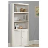 The possibilities are endless with the charming style of this library bookcase from the Cottage Road® collection. Update the living room, bathroom, home office, craft room and more with the three large shelves of this bookshelf with doors. With the perfect amount of space to store and display an array of items – from photos or office supplies to toiletries and towels – the 5-shelf library is both functional and stylish. Two open display adjustable shelves offer flexible storage options for items ranging from tall bottles of laundry detergent to organizing baskets. Behind the framed panel doors is a hidden storage area that includes an adjustable shelf with additional space for items best left unseen. Its versatile style and design make this library with doors a great addition to any room, from the living room to the utility room, down the hallway or even in the bedroom. Finished in Soft White® and detailed with Lintel Oak® accents, this beautiful bookcase is all about storage in style.