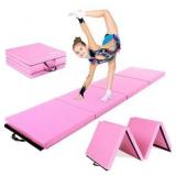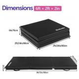 Matladin 6' Folding Tri-fold Gymnastics Gym Exercise Aerobics Mat, 6ft x 2ft x 2in PU Leather Tumbling Mats with Hook & Loop Fastener for Stretching Yoga Cheerleading Martial Arts