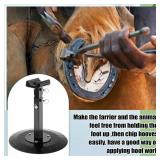 Package Includes: every purchase includes 1 pack farrier stand for horses; This is a nice horse hoof trimming tool that assures excellent support to your horse's hooves, ensuring easy maintenance and overall hoof health Suitable Size: this farrier tools for horses measures 17.5 x 8 x 16.5 inches, providing ample workspace for hoof tasks; Its compact size makes it easy to maneuver, yet substantial enough to manage tasks efficiently Safe and Stable: the combination of a strong steel structure and a rubber base gives our farrier stand a stable support that is safe for both the horse and user; You don't have to worry about it wobbling or slipping during use; The stable support it provides makes hoof care procedures easier and less stressful Adjustable Height Design: our adjustable farrier stand has a height adjustment feature that allows for versatility in its use; The adjustable setting makes it not only for horses, but also for cows, goats and donkeys, offering ease and flexibility during grooming or medical sessions; Reducing the fatigue associated with hoof care tasks Widely Applicable: this horse hoofs trimming tools has a wide range of uses, convenient for daily maintenance work on the hooves of horses, cattle, donkeys, and sheep; Its exceptional design makes it a good choice for horses, farriers, horse owners, hoof trimmers, grooms, and veterinarians