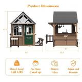 MSRP $439.99 [Beautiful And Durable]: The children's outdoor playhouse is made of high-quality fir wood, and its natural, warm tones and unique grain patterns will create a beautiful and attractive kid's play space that will add brilliance to the backyard. Known for its resilience, cedar wood is naturally resistant to decay and harsh weather, ensuring a lasting and safe environment for your children to enjoy for years to come. [Versatile Design]: The outdoor playhouse for kids is designed to inspire imagination and foster creativity with a sink, stove, kitchenware, chalkboard, bench, fence, and even a clock. Whether cooking a gourmet meal in your own kitchenette, drawing a masterpiece on the chalkboard, or learning to tell time, this versatile playhouse will provide a rich interactive experience for kids to dream big and enjoy countless hours of creative fun. [Realistic House Design]: This wooden outside playhouse can help children develop social and emotional skills. This charming playhouse features a hinged door, a working doorbell, flowerpot holders, a chimney, and a serving station. It's the perfect setting for imaginative play, where kids can engage in role-playing activities, develop friendships, and learn essential social skills like sharing and cooperation. [Spacious Interior]: Seizeen kids playhouse is sturdy and can be placed in any size outdoor or indoor area. Assembled dimensions: 63"H x 65.4"W x 67.3"D. Its ample space encourages group play and promotes social interaction and teamwork. Whether in the backyard or the living room, this playhouse becomes a magical world where children can explore their creativity and make lasting memories.