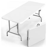 VINGLI 4 Pack White Plastic Folding Chair, Indoor Outdoor Portable Stackable Commercial Seat with Steel Frame 350lb. Capacity for Events Office Wedding Party Picnic Kitchen Dining