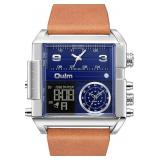 Fashion Square Watch: The classic digital&analog watch features 51mm diameter square big face with 3 time zone, Alarm, LED backlight, Calendar, and stopwatch functions. 12/24 Hour Time Format. Material: Japanese imported quartz movement and long-life battery keep accurate time. Hardened Mineral glass provides scratch resistance. The durable genuine leather strap is fully flexible and comfortable, which brings you a nice wearing experience. Nice Gift: The wrist watch for men is a perfect gift for you and your loved ones. It is designed for all occasions, formal or casual. 30M Waterproof: 3ATM water pressure resistance construction (100ft). This gold watch for women is water resistant to rain, hand washing and accidental splashing. Avoid contact with hot water and steam, such as hot bath and sauna.
