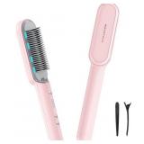 Wavytalk Hair Straightener Brush, Sleek Sweep Ionic Straightening Brush with 6 Temperature Adjust, Anti-Scald Ceramic Straightening Comb Fast Heating for Home Salon, Dual Voltage Pink.