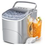 Countertop Ice Maker Machine, 8 Ice Cubes in 6 mins, 26lb/Day Ice with 2 Sizes- Portable Mini, Energy Saving & Basket/Scoop for Home/Party/Travel/Camping/Bar,White