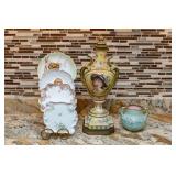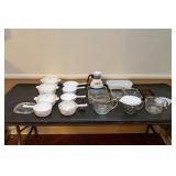 GLASSWARE & CHINA Large Collection of Orange Carnival Glass, Carnival Glass Berry Fenton Aqua Blue Opalescent Glass Epergne Bowl, Art Pottery Floral Vase, Art Deco Double-Hull Calla Lily Art Pottery Vase, Invento English Made Gurgle Fish Jug, Two-Piece Carnival Glass Pedestal Punch Bowl, Two Carnival Glass Pedestal Punch Bowls, Louisville Stoneware Casserole DIsh, Uranium Vaseline Glass Covered Butter Dish, Two Jadeite Bubble Serving Glass Bowls, Louisville Stoneware Creamer, Carnival Glass Amberina Pitcher and Eight Glasses, Iridescent Carnival Deviled Egg Relish Plate & Compotes, Three Fire-KIng Jadeite Art Deco Tumblers, Three Glass Decanters, Fenton Aqua Blue Opalescent Glass, Pink Depression Hen & Rooster Candy Dishes, Uranium Vaseline Glass Shakers, Italian Cristal 2000 Pitcher, Wine Glasses and Water Glasses, Uranium Vaseline Glass Ashtray, Uranium Vaseline Glass Cream & Sugar Set, Uranium Vaseline Glass Small Handle Dishes, Blue Iridescent Carnival Glass Pitcher and Eight Glasses, Blue Iridescent Carnival Glass, Johann Haviland Dinnerware Set, Four Pyrex Dishes, Pyrex Town & Country Mixing Bowl and Amish Butterprint Dish, McCoy Art Pottery Pitcher and Planter, Noritake "M" N118 Gadroon Border-Flowers in Urn Dinnerware Set, Imperial Carnival Glass Iridescent Frosted Pitcher and Glass Set, Cabbage Rose Pink Depression Pitcher & Glasses, Milk Glass, Hobnail Glassware, Noritake Miranda Dinnerware Set, Blue Iridescent Carnival Glass Bowl, Covered Dishes, and Candy Dishes, Crown Ming Dinnerware Set, Oneida Ava Dinnerware Set, Churchill Dinnerware Set, Gold Accented Glassware, Glass Cake Stands & Compotes, Hand-Painted Condiment Sets & Tea Cups, Lenox Christmas Serving Items, Coca-Cola Collectibles, Collections of Clear Glass, Two Kitchen Cabinets of Glassware, Glass Tumblers, Uranium Vaseline Glass Biscuit Jars, Uranium Vaseline and Custard Glass Dishes, Jeannette "Cherry Blossom" Pink Depression Glass, Ten Sundae Glasses, Uranium Vaseline Glasses & Dishes, Modern Fire King Jade Dishes, Orange Iridescent Carnival Glass, Alabaster Collectibles, Hull Art Pottery Vases, Ink Well, Perfume Bottle, Shakers and Dishes, Three Porcelain Chocolate Sets, Glass Cruets and Decanter, Hand Painted Plates, Collectible Glassware, Blue and White Dishes, Pressed Glass Candelabras and Candlesticks, Iris & Herringbone Marigold Carnival Glass, Pink and Yellow Depression Glass Serving Ware, Tiara and Marigold Glass, Set of Royal Albert Cotswold Dishes, Japanese Cobalt Blue Dishes, Chocolate Sets, Cups and Saucers, Marigold Carnival Glass Dishes, Beer Steins, Vintage Dolls, Miniature Pitchers, Teacups, and Vases, Shelf of Porcelain and China Dishes, Iris & Herringbone Carnival Pitcher and Tumbler Set, Iris & Herringbone Carnival Glass Drinkware Collection, Porcelain Serving Dishes and Vases, Creamer, Plates and More, Pink Depression Glass "Harvest Grape" Plates and Bowls, Various Pink Depression Glass Serving Ware, Snowbaby Figurines, Two Gibson Christmas Dinnerware Sets, Kitchenware and Decorative Items, Lenox Ceramic Figurines, Spice Jars,Teapot, and Vases, "Shell Pink" Milk Glass Snack Plates, Cups and More, Pressed Glass Serving Dishes, Cobalt Blue and Gold Decorated Stemware, Victorian Style Ornamental Pitchers, Ewers and Vases, Mikasa Palatial Gold Dinnerware, Four Boxes of Figurines and Ornaments, Ceramic Piano Babies, Large Decorative Vases and Pitcher, Bohemian Cobalt Blue Glass Vases, Mid-Century Modern Kimiko Highball Glass Set, & more.