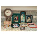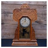 CLOCKS Sessions Regulator Wall Clock, Ridgeway 2621 Grandfather Clock, Federal Style Grandfather Clock, Seth Thomas Mantle Clock, Regulator Wall Clock, Early Seth Thomas Weight Box Clock, Ingraham Gingerbread Oak Kitchen Clock, Ansonia Henley Mantle Clock, & Art Nouveau Desk Clock.