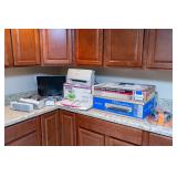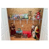 HOUSEHOLD Glass Storage Containers and Canister Jars, Stainless Steel Flatware Set, Two Chrome Wire Shelving Units, Chrome Wire Shelving Unit, Two Clothes Racks, Corning Ware, Pampered Chef & Fire King, Fitz & Floyd Christmas Decor, Laguiole Jean Dubost Knives, Laguiole Jean Dubost Cream Kitchen Knives, Laguiole Jean Dubost Black and Cream Knives, Eureka Floor Rover Dash Vacuum Cleaner, Bubugao Folding Step Household Ladder, Bombay Three Wise Men Figurines, Faux Wood Grain Ceramic Plant Stand, Cuisinart Kitchen Appliances, Chef Kitchen Decor, Three Kitchen Appliances, Rival 18-Quart Roaster Oven, Four Door Kitchen Cabinet Unit, 6' Heart Cutout Hanging Shelf Coat Rack, Infrared Quartz Heater, Variety of Household Cleaners and Supplies, Two Shark Steam Cleaners, Irons, Organizers and More, Electronics and Accessories, Various Household Cleaning Tools, Folding Step Stool, Cake Jello Molds, Garden Vitroceramic Cookware Set, Fitz & Floyd Christmas Cookie Trays, Desktop Mirror & Organizer, Christmas Linens and Decor, Ceramic Pitchers and Cookie Jars, Ajay TrimLine Stationary Exercise Bike, Kwikset Titan Door Lock Set, Bathroom Vanity Items, Closet of Christmas Decor, Large Santa Claus Tape Cassette Player, & more.