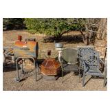OUTDOOR & GARDEN White Cast Aluminum Garden Bench, Green Cast Aluminum Garden Bench, Concrete Native American Chief, Yellow Painted Cast Aluminum Garden Bench, Eddie Bauer Croquet Set, Ornate Cast Aluminum Table and Four Chairs, Ornate Cast Aluminum Garden Bench, Pair of Cast Aluminum Patio Chairs, Pair of Wrought Iron Springer Patio Chairs, Cast Aluminum Bistro Table and Two Chairs, Patio Supplies, Cast Iron Bistro Table, Concrete Garden Art, Pallet of Mulch, Paver Stones & more.