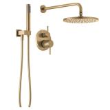 - The Modern Raincan shower system includes a rain can shower head, shower arm, integrated diverter shower trim, wall-mount handheld shower, wall elbow, and all required valves for installation.
