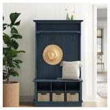 - Wall-mounted design with slatted detailing and curved edges for a modern touch