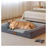 This orthopedic pet bed offers a cozy and supportive sanctuary for your canine companion's relaxation. It features a water-resistant polyester cover and comfortable memory foam fill, creating a comfortable spot on your floor. It is built with three surrounding bolster cushions, and it gives your dog a place to rest their head or feel secure as they sleep. This rectangular dog bed handles everyday use and provides a welcome addition to your indoor living space. Plus, the cushion can support up to 70 lbs.