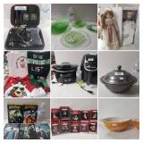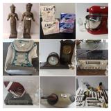 Whirlpool Electric Dryer with Front-Loading Door | De'Longhi TRH0715 Oil-Filled Radiator Heater | Dyna-Glo RMC-95-C2 Kerosene Heater with Protective Cage | Kero-Sun Radiant 10 Portable Kerosene Heater | Nespresso Single-Serve Espresso Machine (Needs Cleaning) | KitchenAid 3-Speed Hand Mixer with Beaters | Kalorik Countertop Toaster Oven with Multiple Functions | Bella Triple Slow Cooker with Removable Stoneware Inserts | Crock-Pot Slow Cooker, Nonstick Griddle, Silicon Mold, and 2 Taco Shell Pans | ESCO Electric Roaster Oven with Three Brown Ceramic Inserts | Mid-Century Vintage Sunbeam 10-Speed Mixmaster with Milk Glass Bowls | Cuisinart Burr Coffee Grinder Model DBM-8 | Farberware Pan, KitchenAid Hand Blender, and Brod&Taylor Toaster Set | 3 Stainless Steel Sauce Pans with Lids | Lodge Cast Iron Skillet No. 8 and Lodge Cast Iron Reversible Griddle | Revere Ware Stainless Skillet and No. 12 Cast Iron Skillet Set | 4-Piece Lot: Henckels Knife Block, Farberware Cutting Boards, Corian Tray | Stainless Steel Stock Pot Set with Lid and Colander Inserts | Kitchen Lot with Covered Serving Tray, Ice Bucket, and Popsicle Molds | Nostalgia Electrics Commercial Chocolate Fondue Fountain 6 lb Capacity | Imperia Duplex Pasta Cutter and Roller Attachments | Wear-Ever Electric Percolator with Flatware and Glass | Certified International Ceramic Baking Dish with Iron Stand | The Pioneer Woman Stoneware Chili/Soup Bowls (4 count) | Ernesto Glass Beverage Dispenser Set with Stand | Copper Brownie Pan Set with Dividers and Cookie Cutters | Cheese Board Set with Stainless Steel Tools and Thermos | Rae Dunn Black Metal Tea Kettle