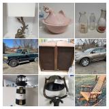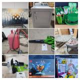 Expert Grill 3-Burner Propane Gas Grill with Side Shelves | Char-Broil Gas Grill 190 with Porcelain-Coated Grate | Toro Ultra 260 MPH Electric Blower/Vacuum | EarthWay Precision Garden Seeder Model 1001-B | Cast Iron Post Hole Digger with T-Handle | GroundWork Pro Series Telescoping Ratchet Lopper | Funsicle Inflatable Truck Bed Pool 66x62x21" | Funsicle Americana Surf Ducky FunSpray Splash Mat | Hampton Bay 200W Low Voltage Digital Transformer | Globe Wall Mount Lantern Lights with Frosted Glass Shades | Wire and Steel Bicycle Flower Pot/Plant Stand | 8 Carlisle Lawn and Garden Tires with Rims | 3 Piece Lot of Trailer Tires with 2 Metal Rims | 4 Piece Lot of Tractor Tires with Rims | Harvest King Front Tractor Tire with Metal Wheel | Steel Disc Harrow Blade with Square Center | Deming Cast Iron Well Pumps (2) | Behrens 31-Gallon Galvanized Trashcan | 58 Pieces of Terracotta Plant Pots | 3 Mexican-Style Woven Blankets and Tapestry | Rustic Bird Feeder with Corrugated Metal Roof | Metal Bird Feeder with Pole and Dome Baffle | GroundWork Garden Shoes and Spray Wands