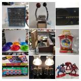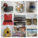 Scandalli Accordion | Dolls: Madame Alexander (multiple), Mattel Barbie Lots, 1991 Mattel Sun Sensation Skipper Barbie, Winter Rhapsody Barbie, Native American Barbie Special Edition, Marie Osmond Fine Porcelain Collectors Set of 3 | Lemax Village Collection Steve's Hideout Treehouse with Figures | Littmann Classic II Stethoscope with Box and Manual | Sharper Image Flex Roller Modular Massager | Fit King Air Compression Leg Massager with Heat | Shark ION Robot Vacuum RV750 with Dock | New Fabric Steamer 600-Watt | Petmate Automatic Pet Feeder | Folding Portable Cot with Side Pocket | Upland Raider Mountain Bike with Shimano Components | Infinity Boss Three Bicycle with Shimano | Collapsible Playpen with Abacus Features | Baby Trend Lightweight Folding Stroller | Evenflo Baby Stroller | Storkcraft Pink Baby Walker | New Orbit Telescoping Water Sprinklers (multiple) | 2 New Vacuum Sealed King Foam Pillows | Vacuum Sealed Gel Foam Mattress Topper | 8 oz Canvas Dropcloth Heavy-Duty 220 GSM | Pergo Gold 100 Sq Ft Underlayment with Moisture Barrier | 45 VCT Flooring Tiles Green Marble Pattern | Bi-Fold Louvered Closet Doors Light Finish | Bi-fold Louvered Doors | Smartliner Cargo Mat and Carpet Set | Harely-Davidson: Mini Ape Hanger Handle Bars, Collection Motorcycle Figurine, Plus More | Phillip Phillies Hat and Majestic T-Shirt Set | New Tommy Bahama Aloha America Red/White/Blue Travel Mug 40oz Stainless | Lemax Village Steve's Hideout Treehouse with Figures | Scentsy Warmers and Wax Bars | Scented Wax Melts (multiple lots) | Girl Scouts Membership Stars and Patches | Military Patches and Insignia Collection | US Army Insignia, Medals, Ranger Handbook, and Buttons | NEW Braun Series 7 Electric Shaver | Conair True Glow Sonic Facial Brush | Conair Blue Hair Trimmer | Bed Head Tigi Massive Shine Deep Waver | Acrylic Cosmetic Organizer | Luminess Air Airbrush Makeup System | Jewelry Chest with Mirror, Drawers, and Side Compartments | Watch Winder Display Case with Glass Front | 20 Thimbles with Display Case | Horse Show Award Ribbon Collection 1970s