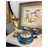 Candelabra’s Artwork (Tons of beautiful art) Dolls Eagle elongated mirror Gorgeous vases Cherub ornate trinket box Cherub water flowing Ornate screen A large variety of paperweights Wood/plastic figurines Capodimonte Ornate horse statue Woman with dog statue Vintage white Christmas ceramic tree Variety of tea pots Beautiful colored vintage glass Miniatures Ginger jars Religious statues Ornate gorgeous hutch White shelving Hot Wheels Buddha statues Tiffany style lamps Fine China Corning ware Vintage Blendo pitcher and glasses Vintage drink ware So many items to list, take a look at all pictures to see EVERYTHING that will be for sale at our Grasons estate sale. Looking forward to seeing you all here! |