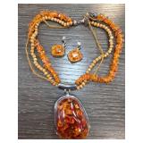 Faux Amber Necklace and Earrings Set |