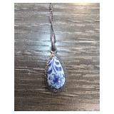 Sterling Silver Necklace with Blue Floral Pendant |